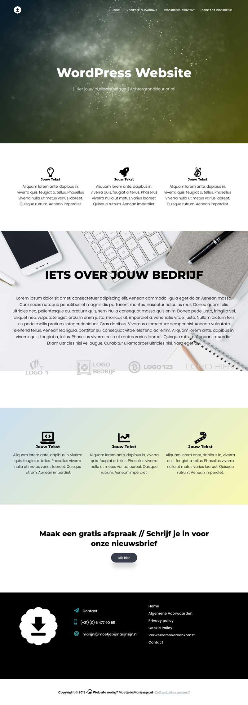 Mooi dynamisch website design met video achtergrond. Alle content is aanpasbaar zodat de website perfect aansluit bij de wensen die je hebt.